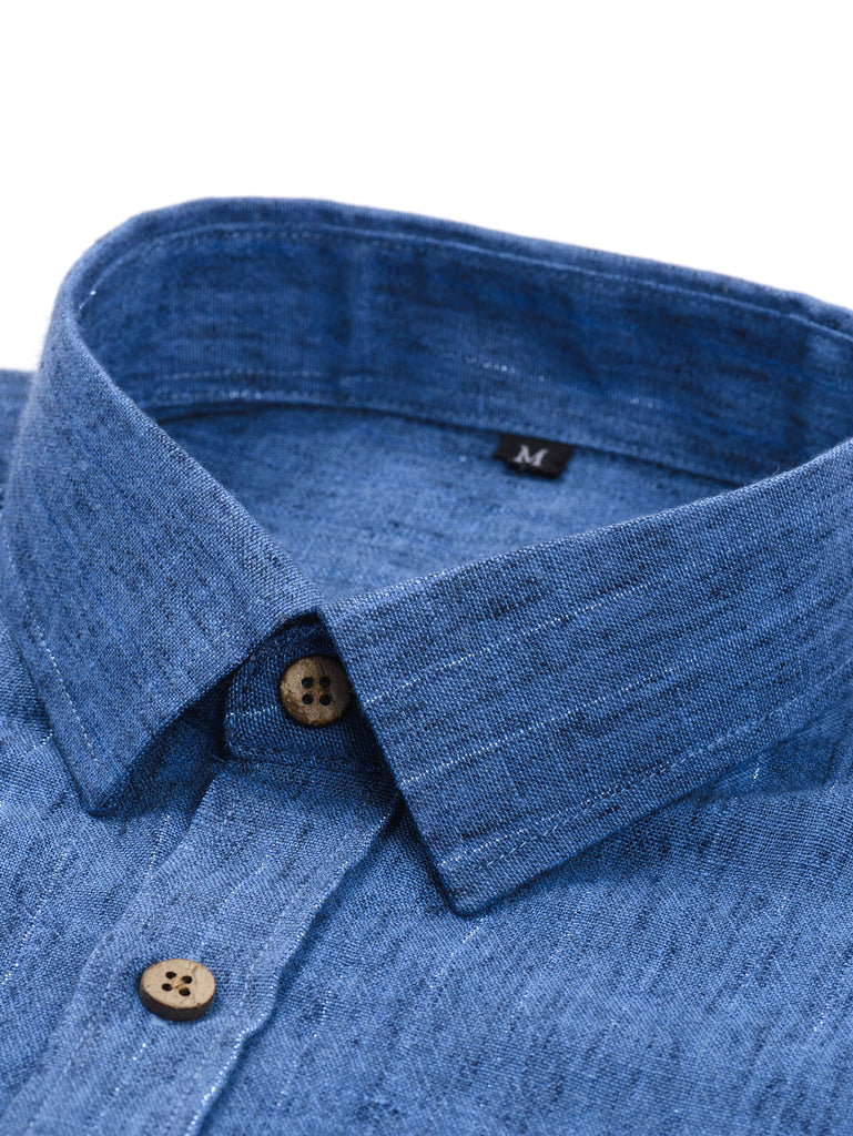 Crafted from breathable linen, it features a classic stripe pattern and a relaxed fit for all-day comfort. The button-up design and long sleeves make it versatile for layering or wearing solo, perfect for casual outings, office wear, or weekend relaxation.