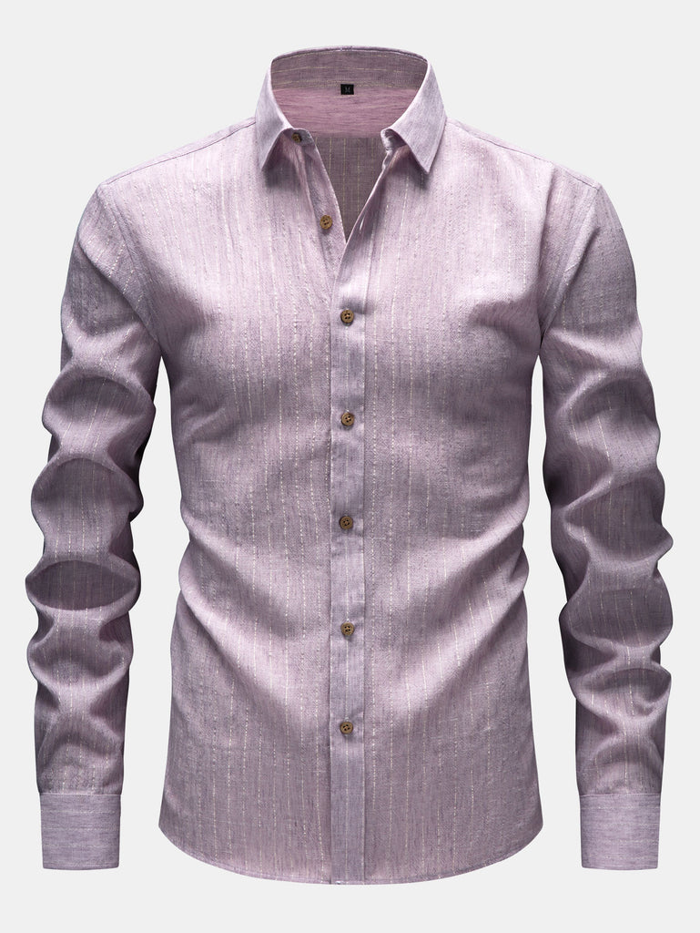 Long Sleeve Stripe Linen Look Button Up Shirt