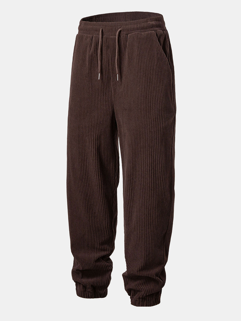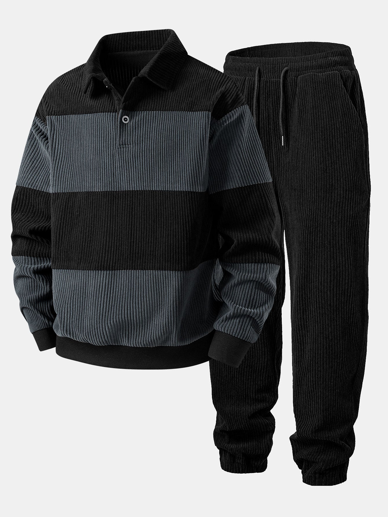 Contrast Corduroy Polo Sweatshirt & Corduroy Jogger Pants
