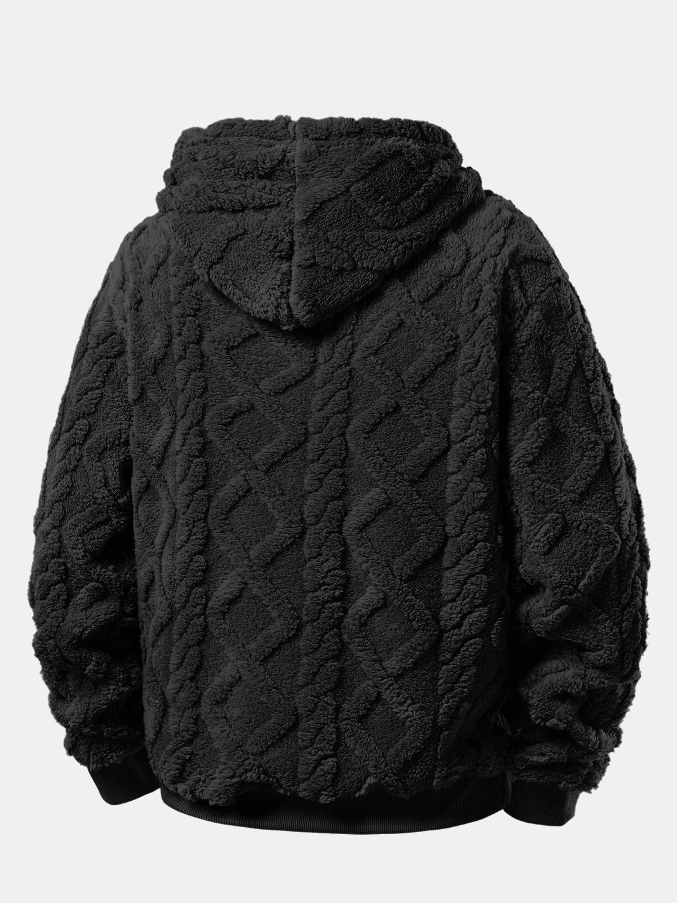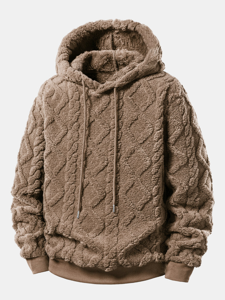Relax Fit Geometric Jacquard Teddy Fleece Hoodie