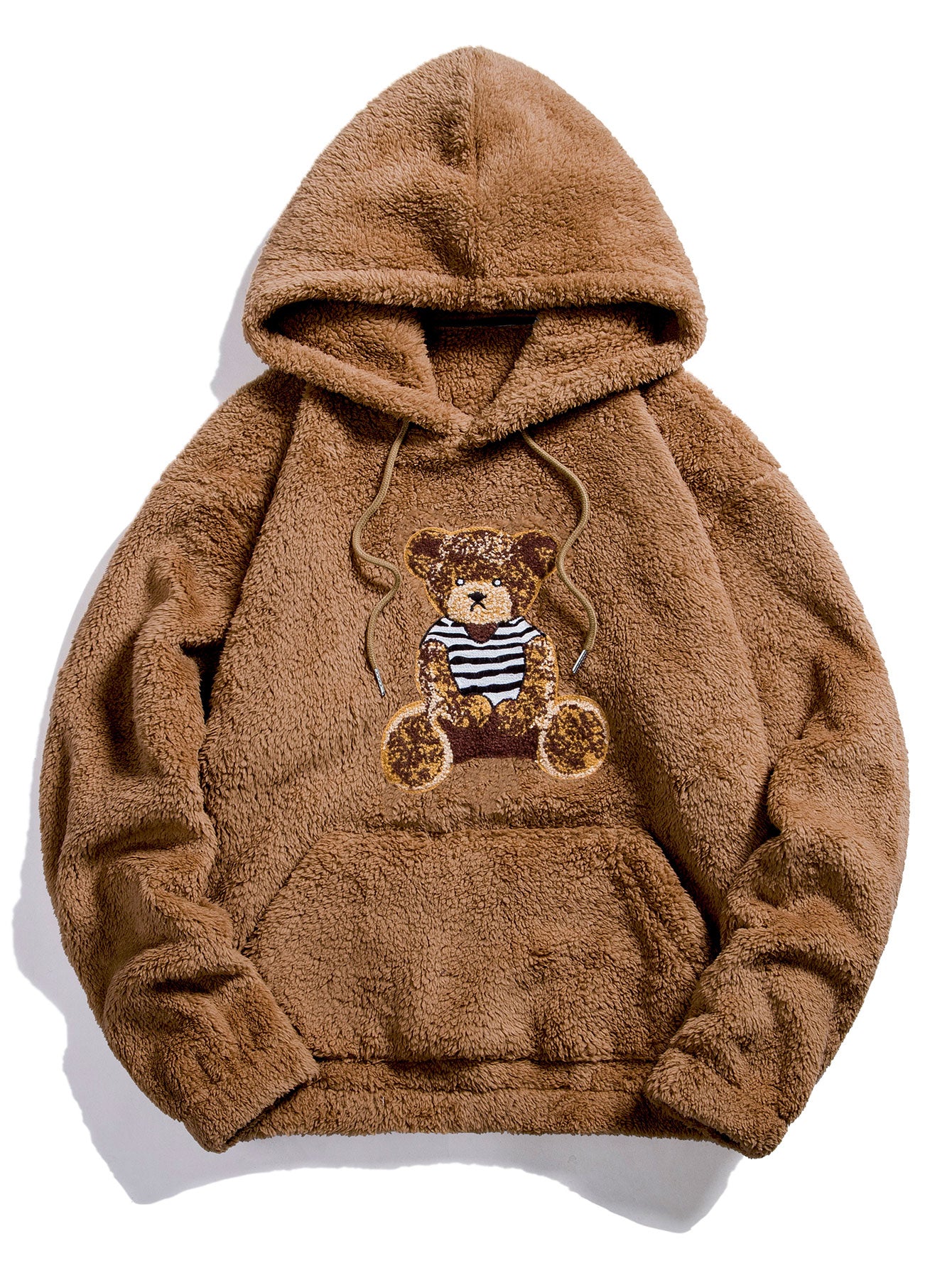 Bear Embroidered Patch Teddy Hoodie & Teddy Jogger Pants