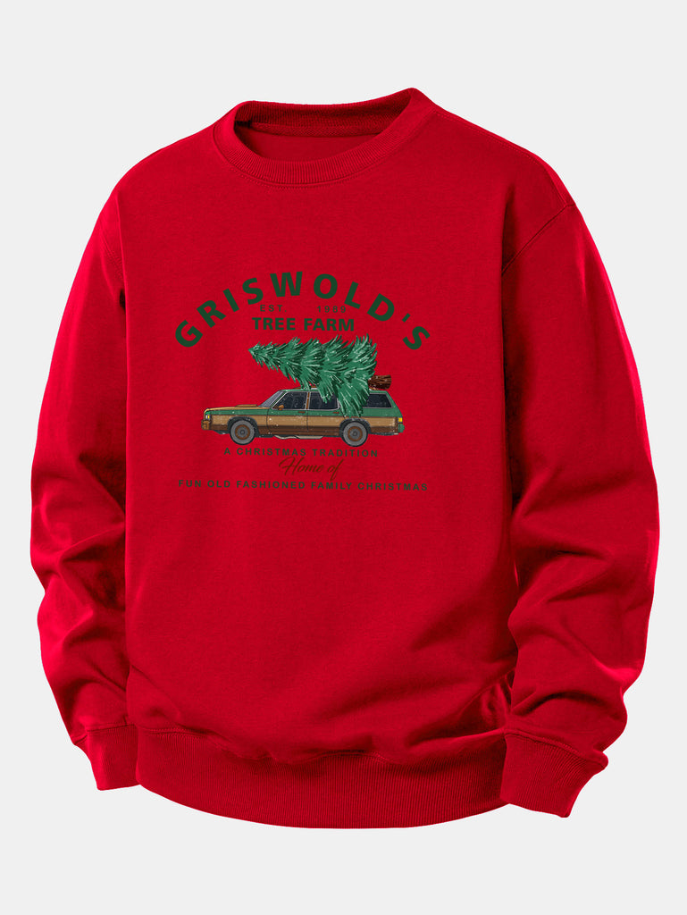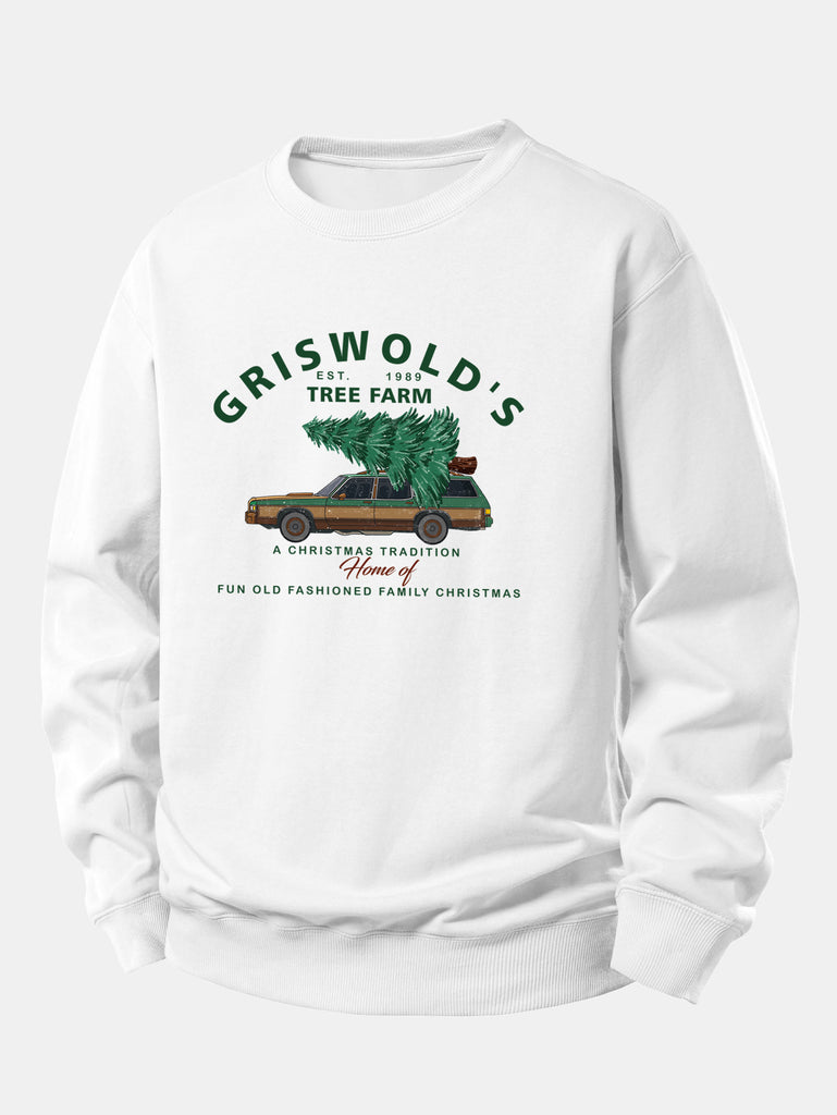 Car Christmas Tree Print Relax Fit Sweatshirt