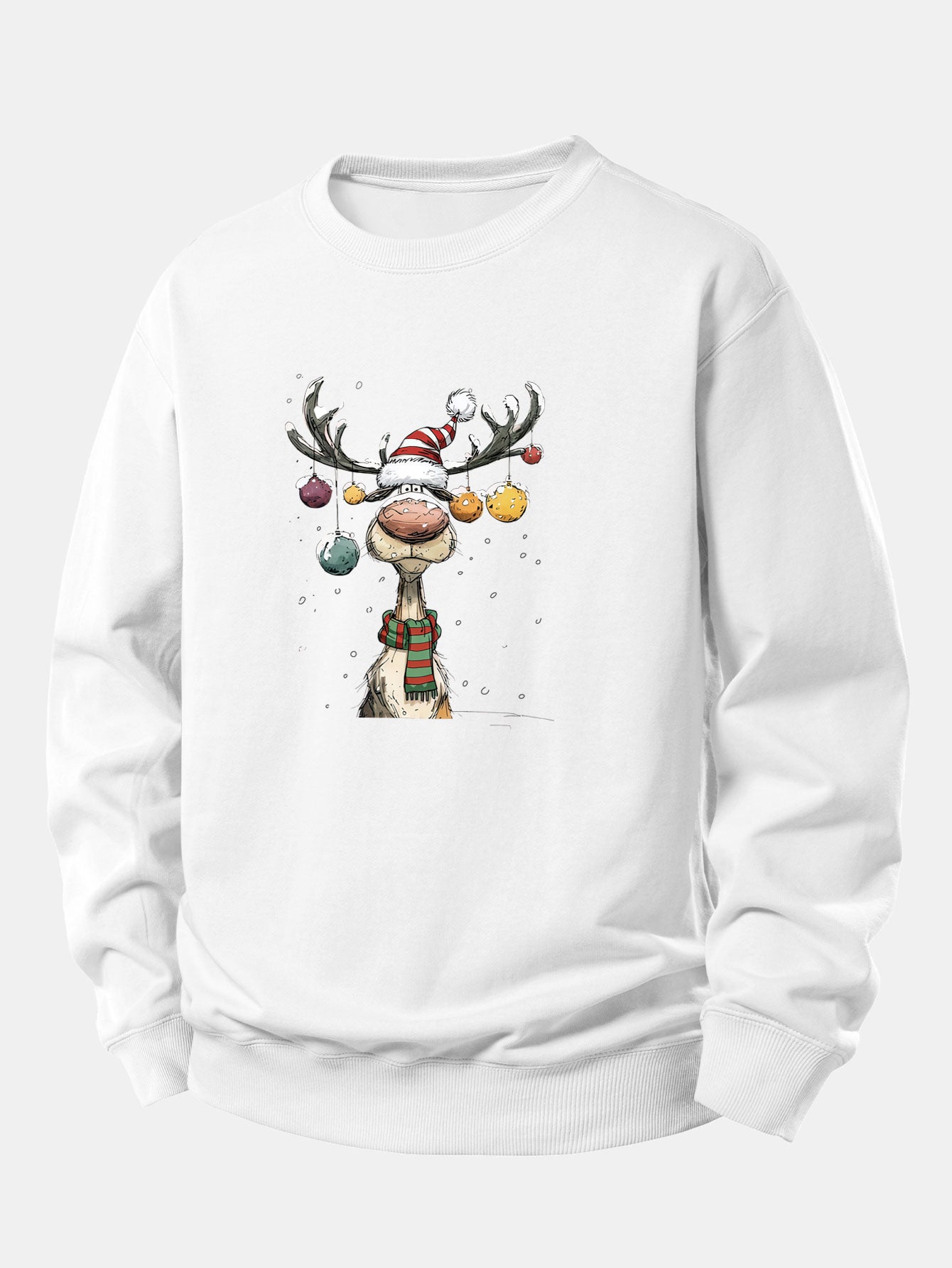 Brighten up your holiday wardrobe with this charming Christmas light reindeer print relax fit sweatshirt. Featuring an adorable reindeer wrapped in colorful Christmas lights, this festive design brings warmth, joy, and playful holiday spirit to any casual outfit.