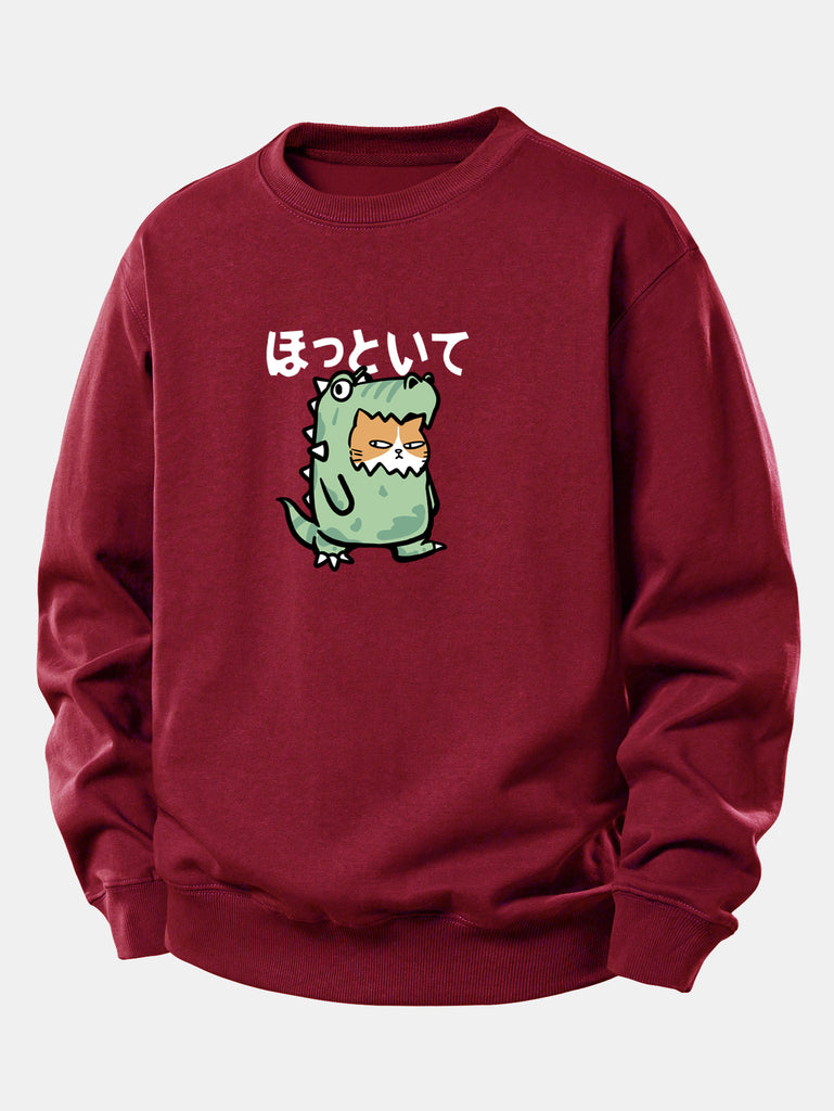 Cat In A Dinosaur Costume Print Relax Fit Sweatshirt