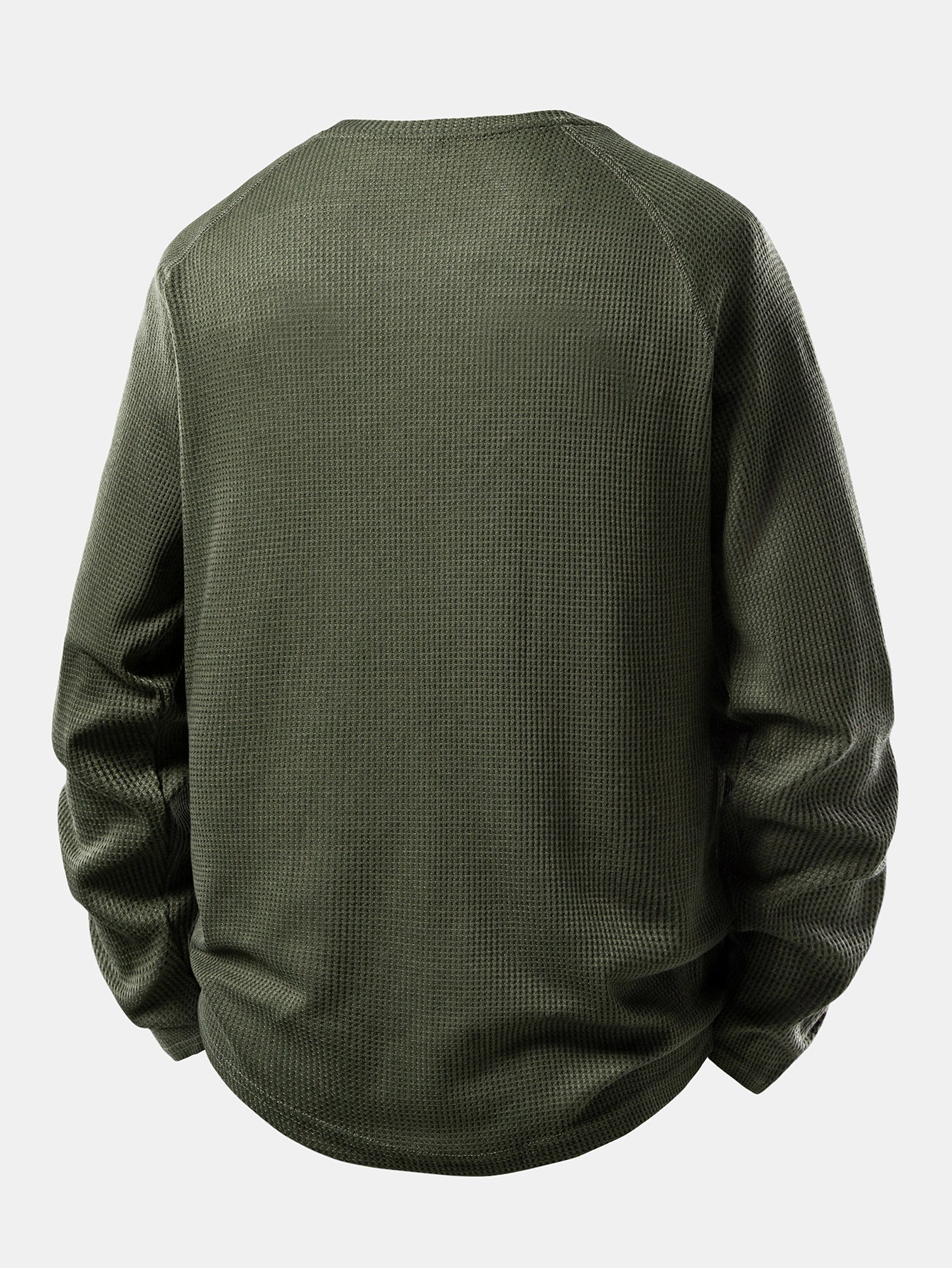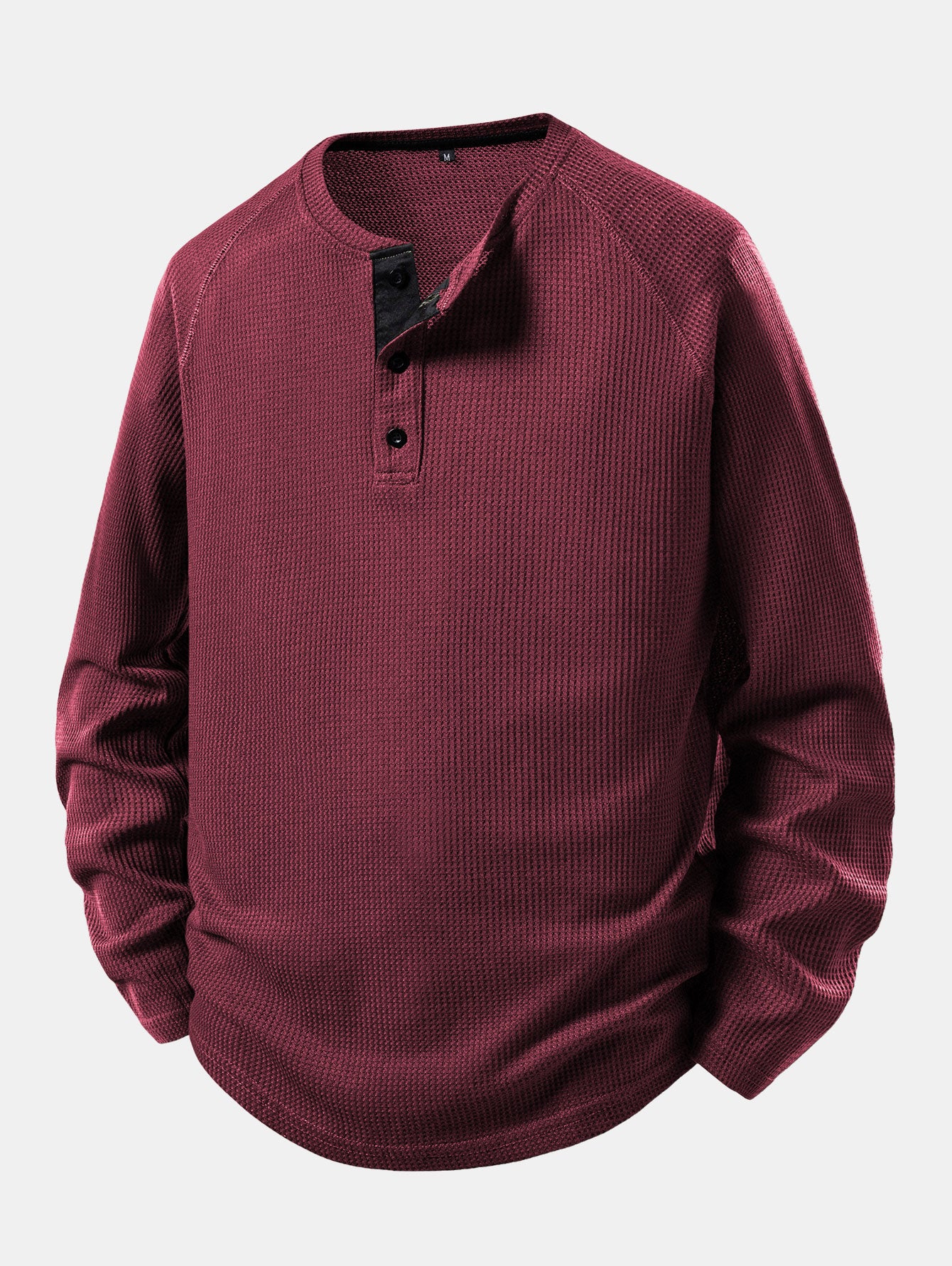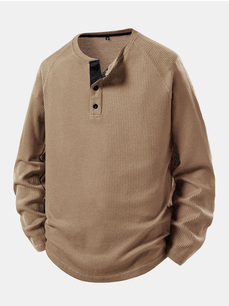 Camisa Henley de Waffle con Manga Larga y Dobladillo Arco