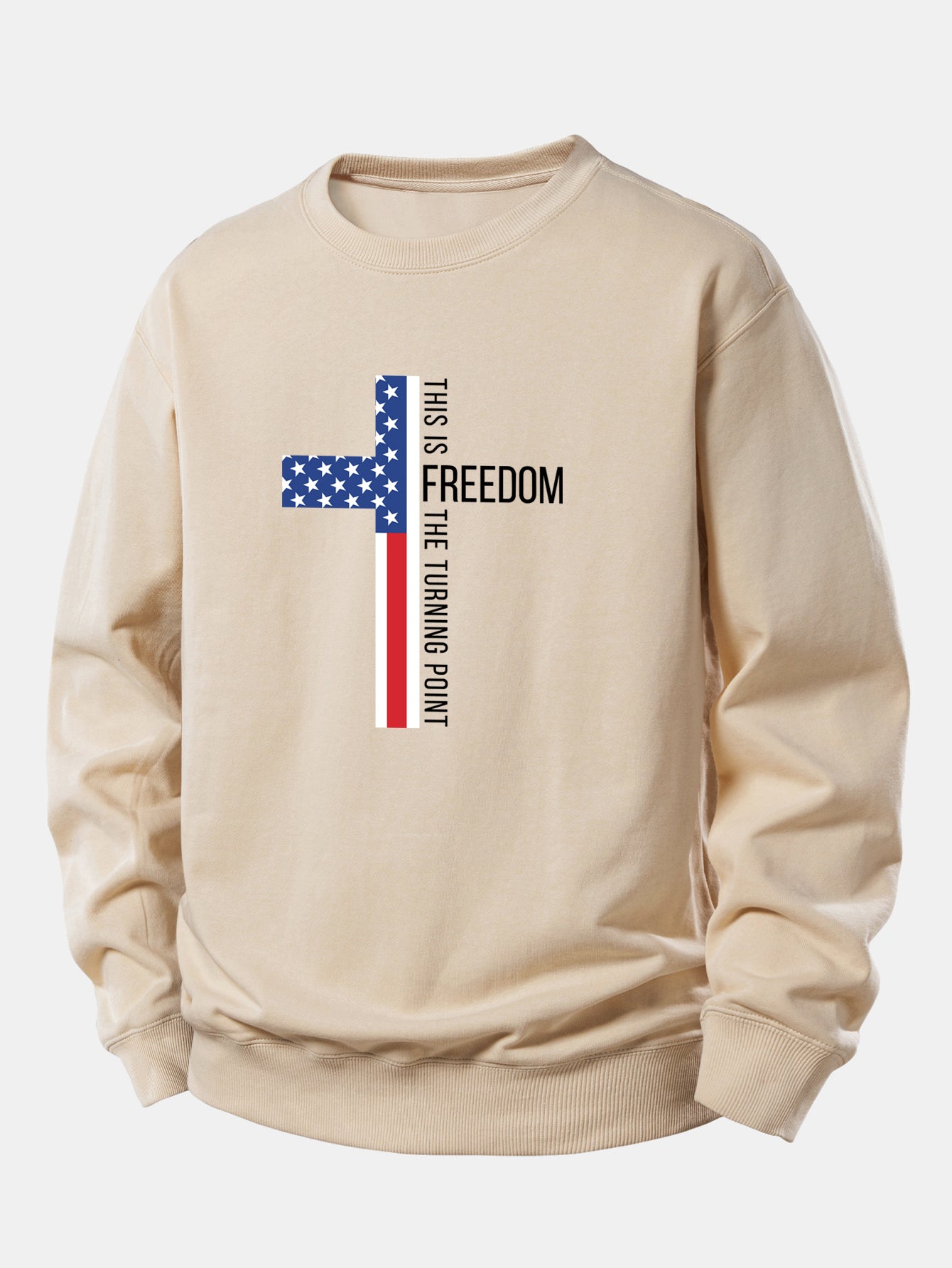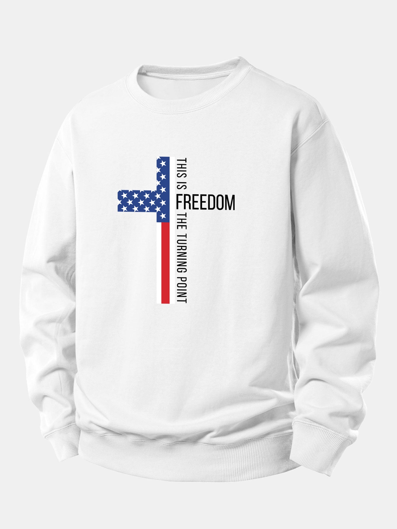 Freedom American Flag Cross Print Relax Fit Sweatshirt