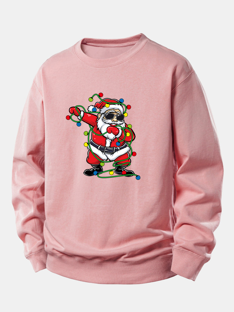 Christmas Lights Santa Claus Print Relax Fit Sweatshirt
