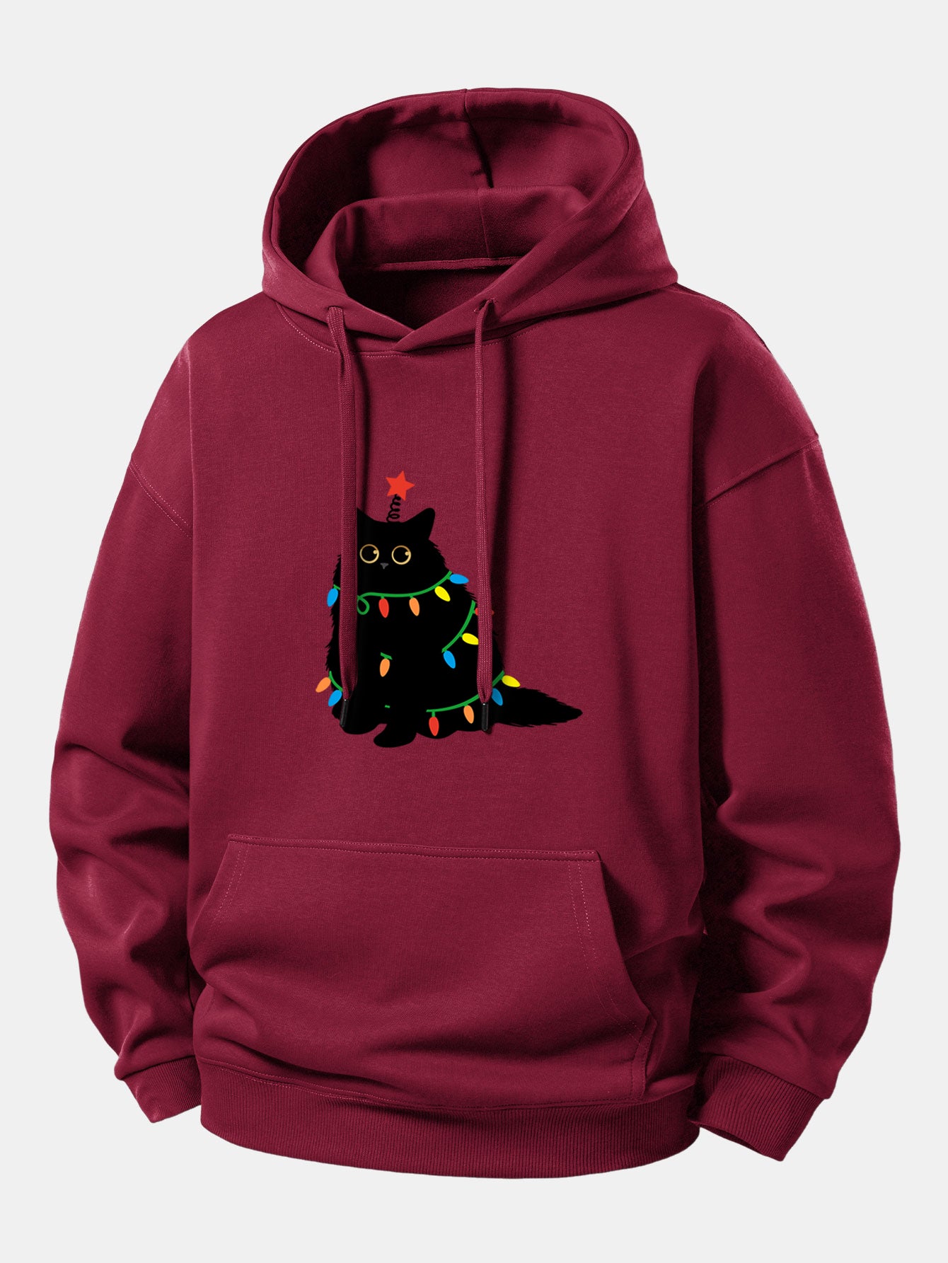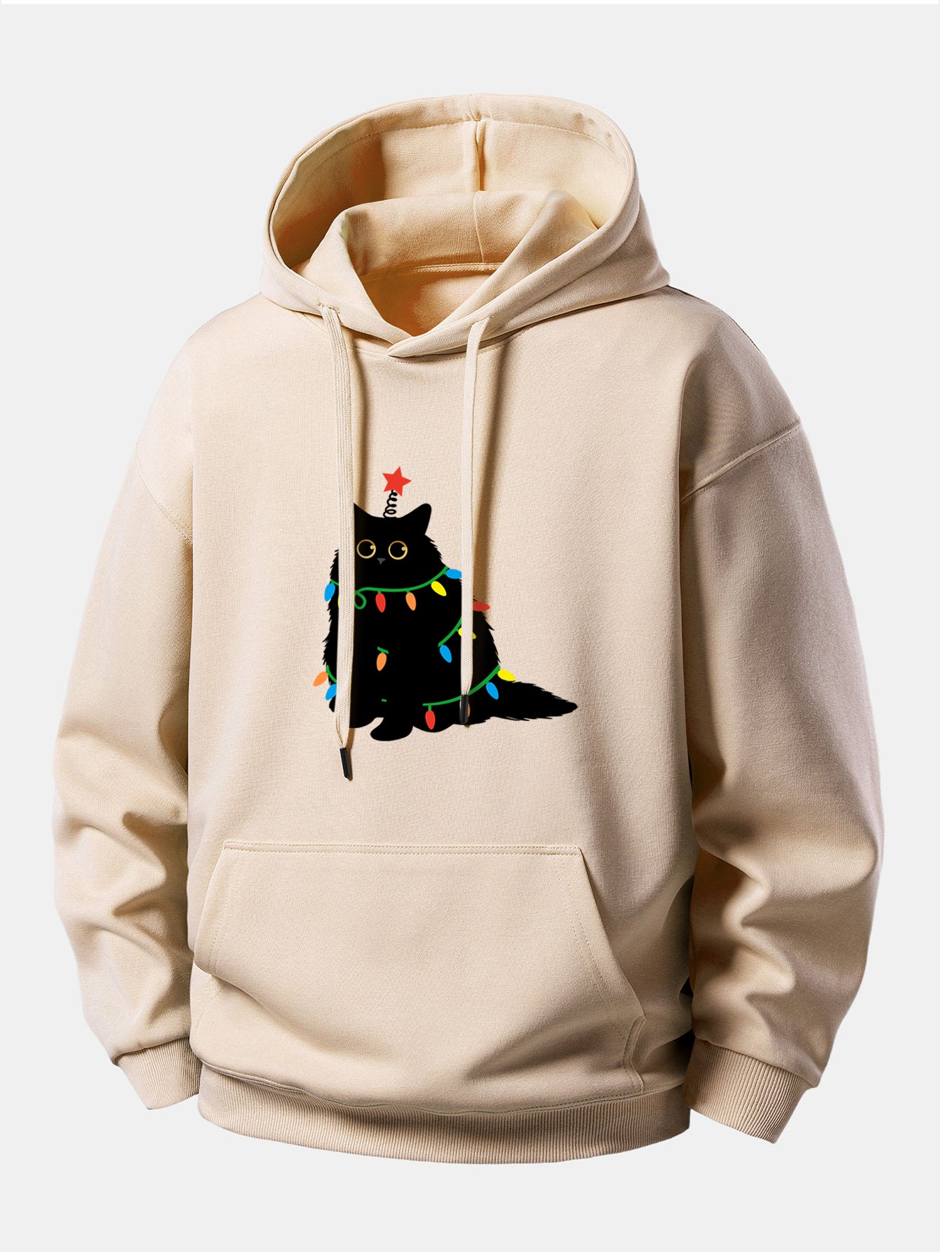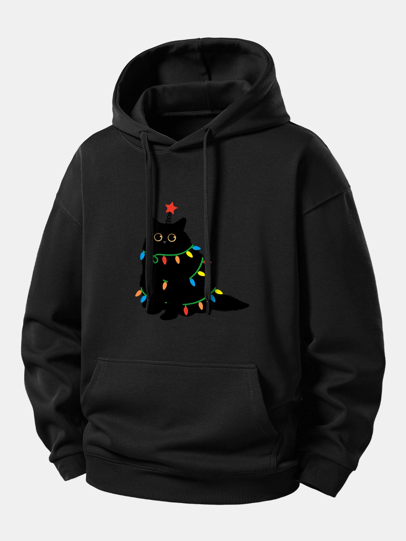 Featuring an adorable black cat illuminated by vibrant, multicolor lights, this hoodie adds a fun and festive touch to your everyday style. The soft, cozy fabric keeps you warm through chilly days, while the relaxed fit offers effortless comfort.