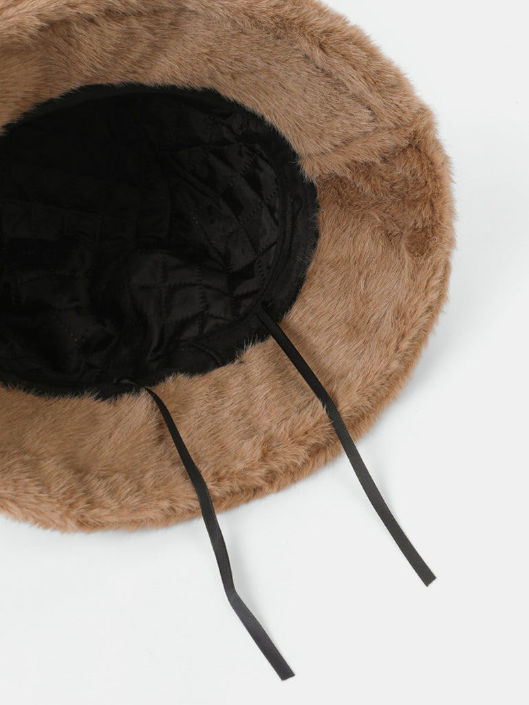 Faux Mink Fur Wide Brim Plush Bucket Hat