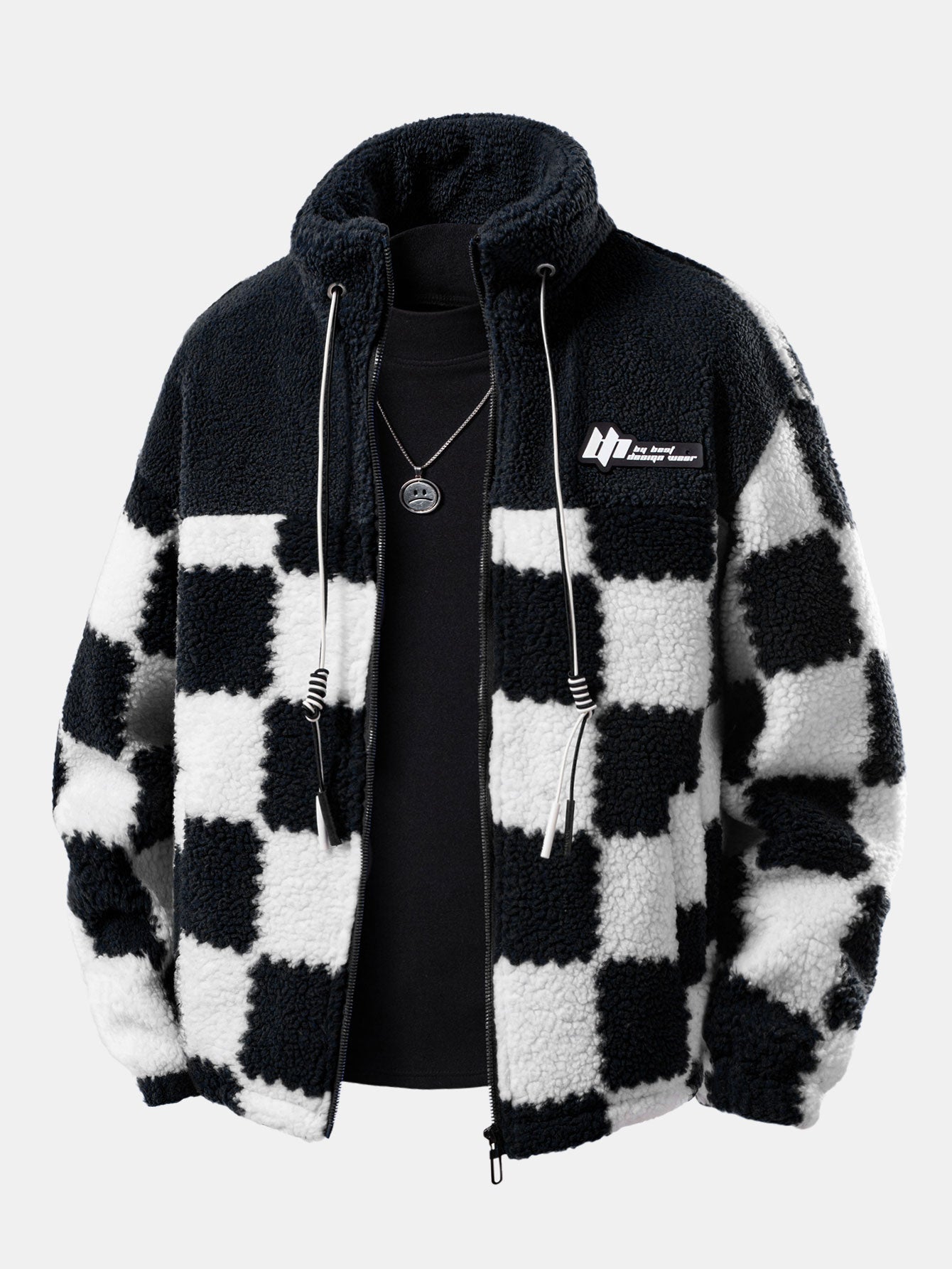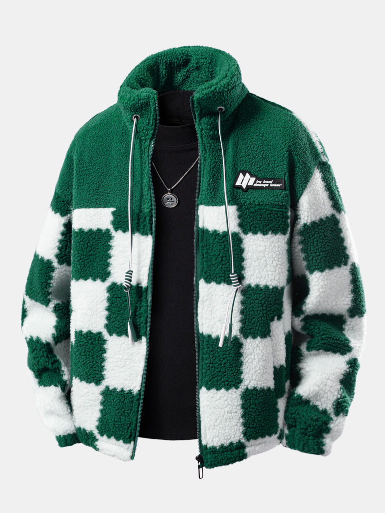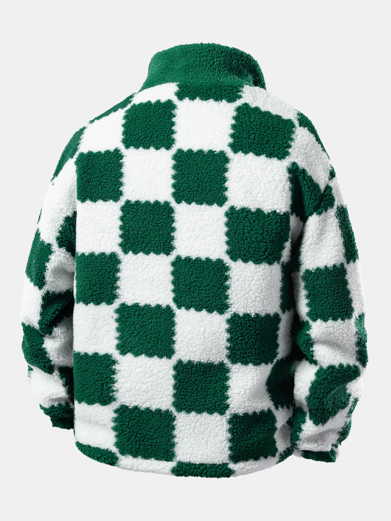 Teddy Fleece Checkerboard Stand Collar Jacket