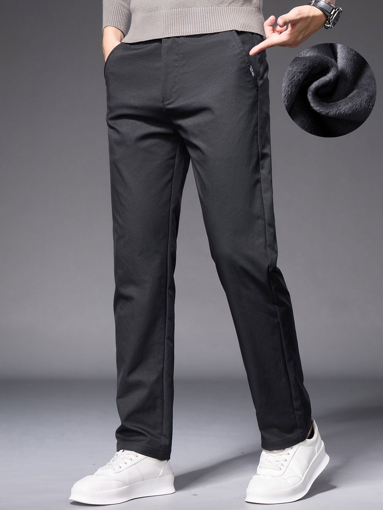 Warm Fleece-Lined Straight Leg Chino Pants