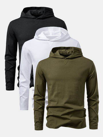 3 Pieces Long Sleeved Cotton Hooded T-Shirt